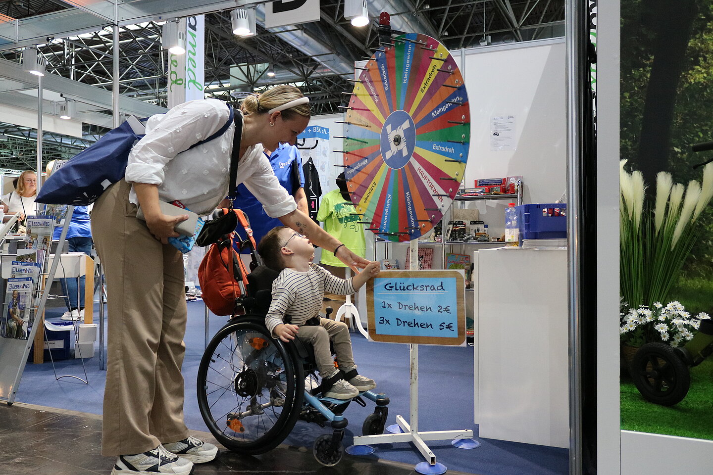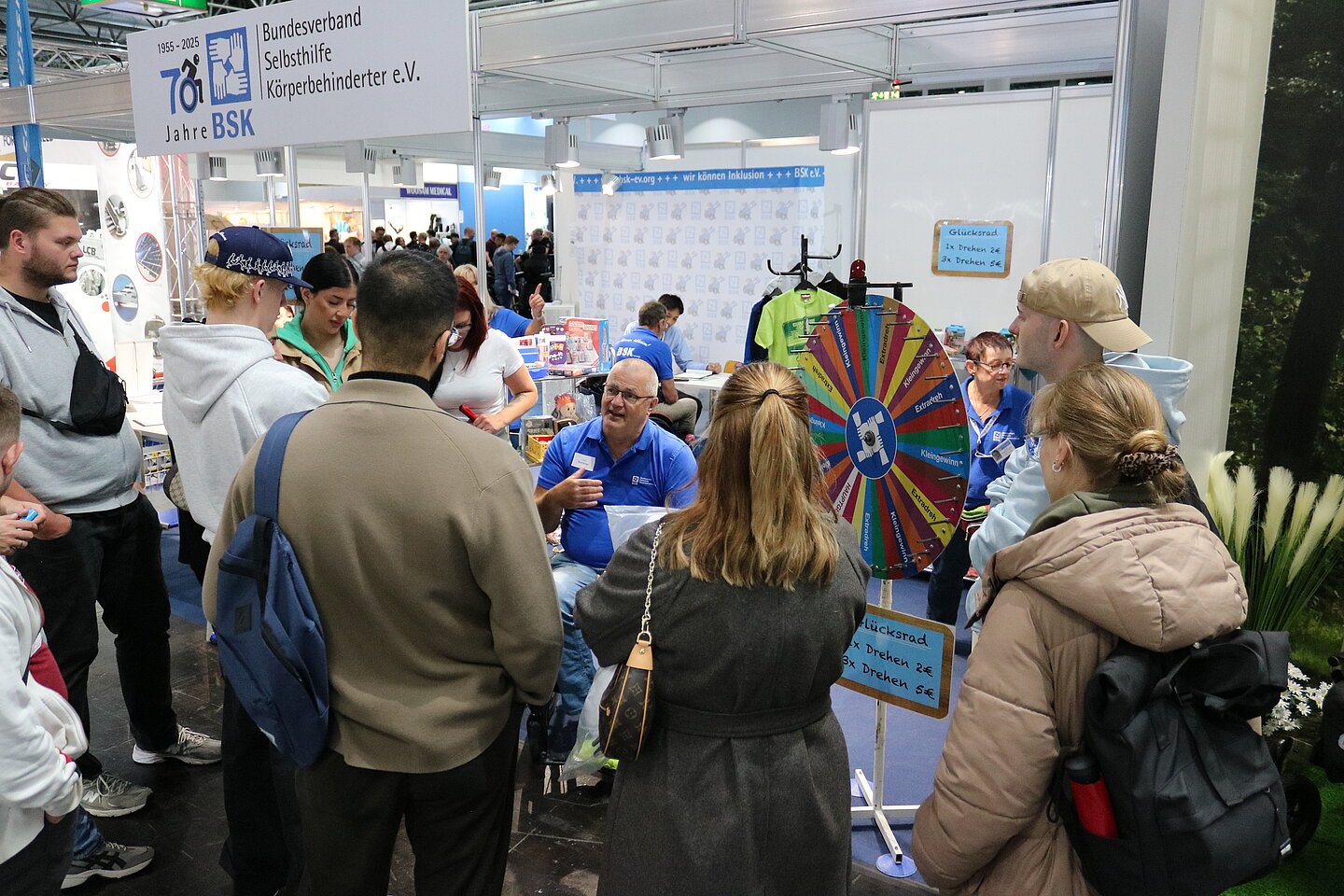Ein echter Publikumsmagnet war wie immer das BSK-Glücksrad, das sich während der Messe fast ununterbrochen drehte. Dank der Unterstützung zahlreicher Unternehmen konnte der BSK tolle Sachpreise anbieten – von Pflegeprodukten über Bücher und DVDs sowie Schokolade bis hin zu praktischen Alltagshelfern und Kinderspielsachen. Der Erlös aus den Glücksradspenden fließt, wie immer, direkt in die ehrenamtliche Arbeit des BSK im ganzen Bundesgebiet. „Das ist kein Show-Act – das Glücksrad ist ein echter Gesprächsöffner“, so Anita Reichert-Klemm. „Hier entstehen Kontakte, erste Fragen – und manchmal beginnt genau hier ein neuer Weg in die Selbsthilfe.“