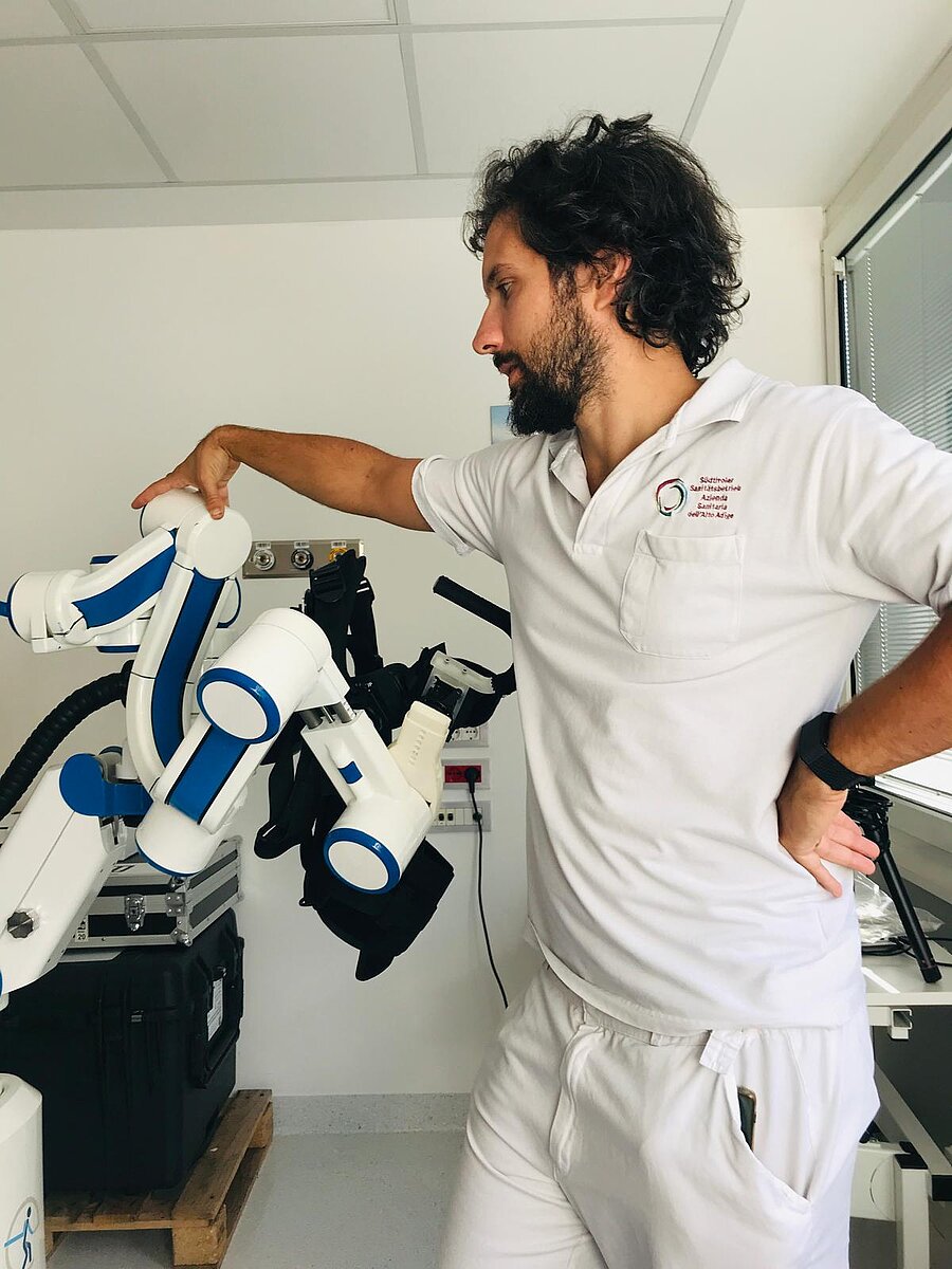 Am vierten Tag war zunächst ein Besuch bei der GWB der Lebenshilfe in Bozen geplant, der jedoch kurzfristig krankheitsbedingt ausfiel. Dank der Initiative von Gerda Fleig konnte stattdessen eine Stadtführung in Sterzing organisiert werden. Die Stadtführerin Monika Palla erwartete uns am Busbahnhof und führte uns ins historische Zentrum. Sterzing, nördlichste italienische Stadt und wie Augsburg eine ehemalige Fuggerstadt, beeindruckte mit ihrem Rathaus und den charmanten Gassen. Ein kleiner Aufzug zum Rathaussaal gab jedoch seinen Geist auf, sodass die Führung an dieser Stelle leider enden musste. Am Nachmittag besuchten wir die Neuro-Reha in Sterzing. Die hochkomplexe Einrichtung widmet sich vorrangig Patienten mit schweren erworbenen Hirnverletzungen, wie Schädel-Hirn-Trauma, Schlaganfall oder Enzephalitis, in der frühen subakuten Phase. Jakob Stolz, Leiter und Koordinator der Abteilung, berichtete von den Erfolgen der Behandlung neurologischer Schäden. Das Team begleitet die Patientinnen und Patienten bei der Entfaltung aller noch vorhandenen motorischen, funktionellen und kognitiven Fähigkeiten mit dem Ziel größtmöglicher Selbstständigkeit und Wiedereingliederung in Familie und Gesellschaft. Wir stellten fest, dass die Behandlungsmethoden teilweise innovativer sind als in Deutschland.