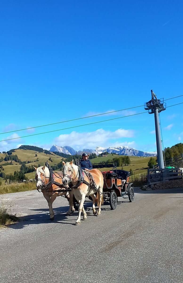 Am zweiten Tag stand die Fahrt auf die 1.680 m hohe Seiser Alm auf dem Programm. Die Fahrt bis zur Bahn bei herrlichem Wetter bot bereits beeindruckende Ausblicke auf die herbstlich gefärbten Wälder. Mit der Gondel ging es dann auf Europas größte Hochweide, wo uns ein grandioser Rundumblick auf schneebedeckte Berge erwartete. Besonders beeindruckend war der Schlern mit seinem Petz, Namensgeber unserer Gruppe. Schöne Wanderwege, gute Gastronomie und die Möglichkeit zu einer Kutschfahrt rundeten den Aufenthalt auf der Höhe ab.