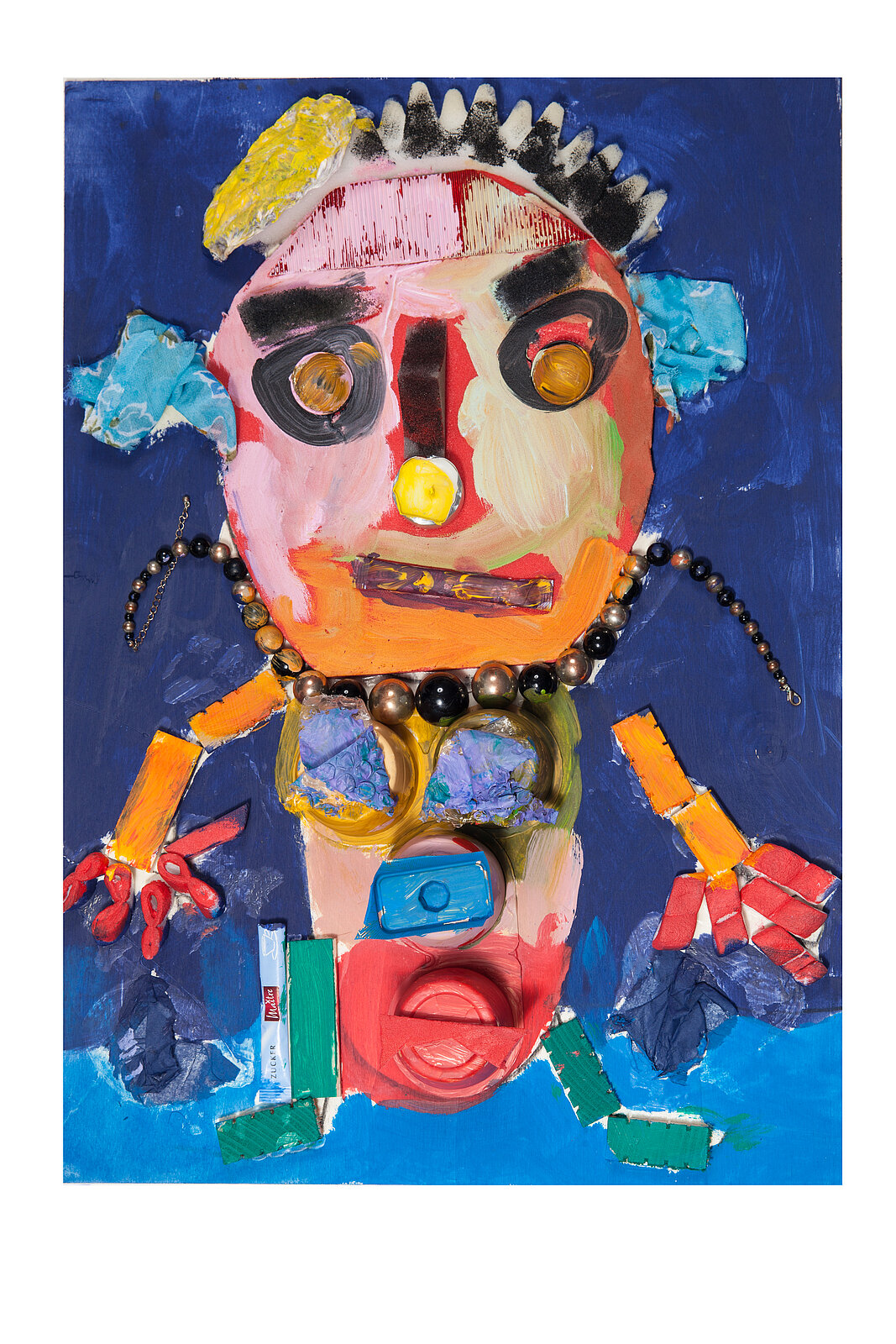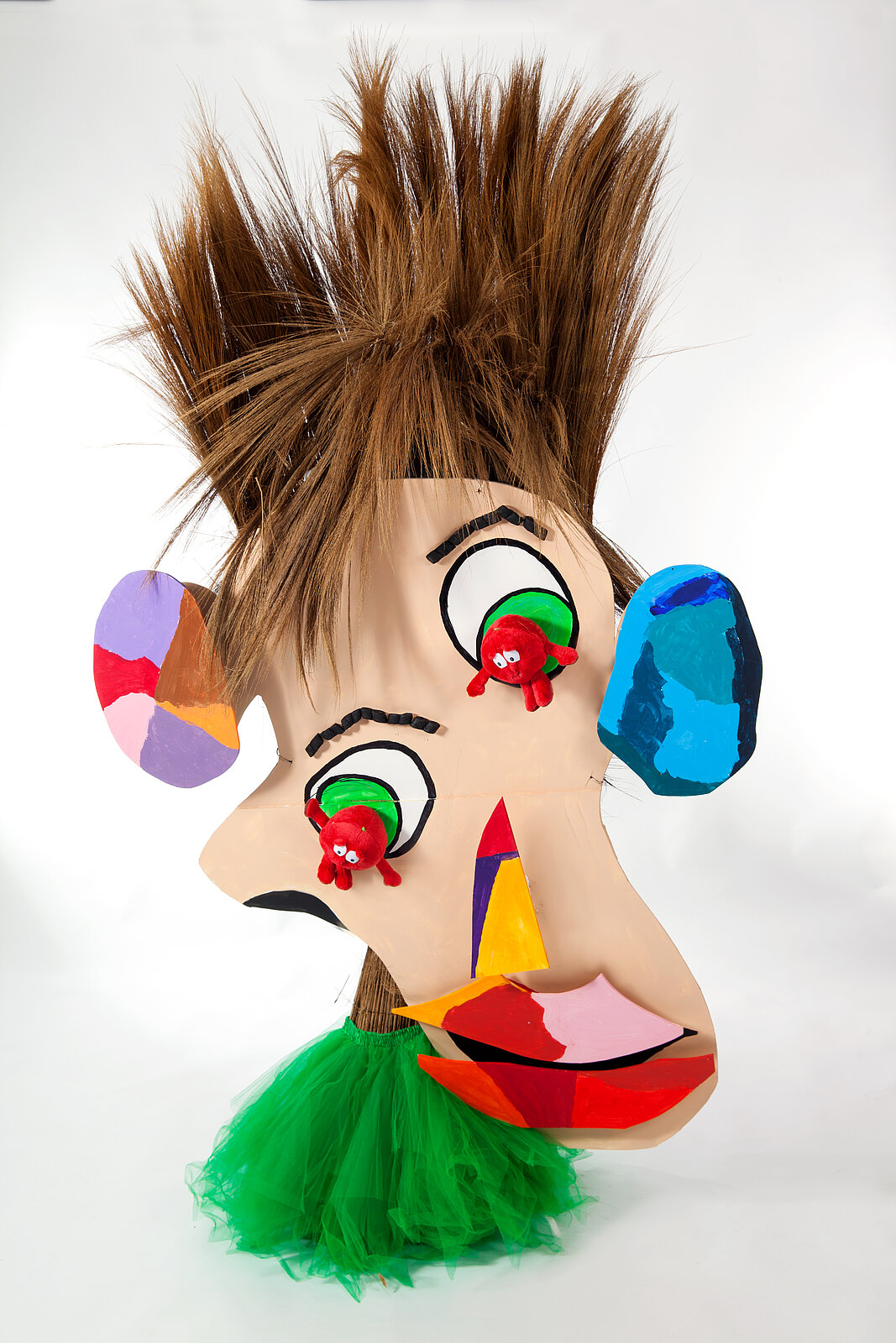 Alle Werke der Ausstellung entstanden in den Kursen von Nina Weitzner. So wurden in einem Workshop sehr aufwendig gestaltete lebensgroße Figuren gebaut, an denen jeweils zwei Teilnehmer/-innen arbeiteten. Zunächst wurden Ideen gesammelt, um eine Vorstellung zu bekommen. Anschließend wurde mit verschiedenen Materialien wie Pappe, Objekten, Stoffen und vielem mehr experimentiert. Abschließend wurden die Figuren zusammengebaut und bemalt. Diese inklusive Erfahrung war für alle ein Abenteuer und eine große Bereicherung. Die großen Figuren waren technisch wie künstlerisch eine Herausforderung und die Arbeit im Team war für alle sehr inspirierend.